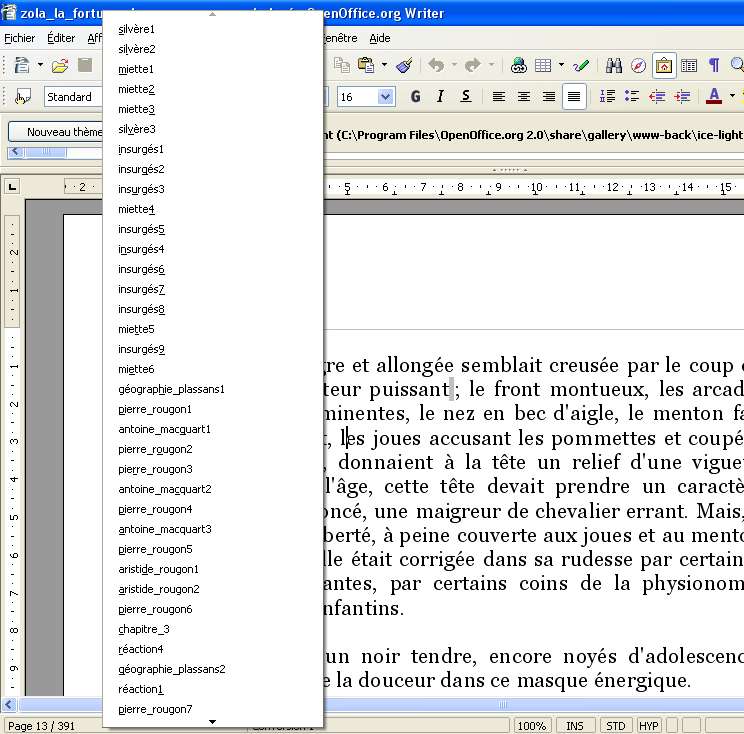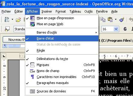 Copies d'écran avec Word 2003, et au-dessous avec open office.